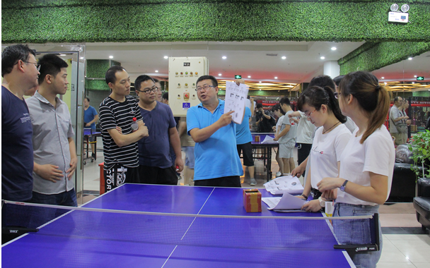 接下來進行的是乒乓球、臺球比賽,兩項運動同時展開。乒乓球比賽共有18位員工參加。每個員工都不甘示弱,使出自己的看家本領(lǐng)。搓球、刁球、旋轉(zhuǎn)球、反手球,你來我擋、戰(zhàn)況激烈,看的人眼花繚亂。