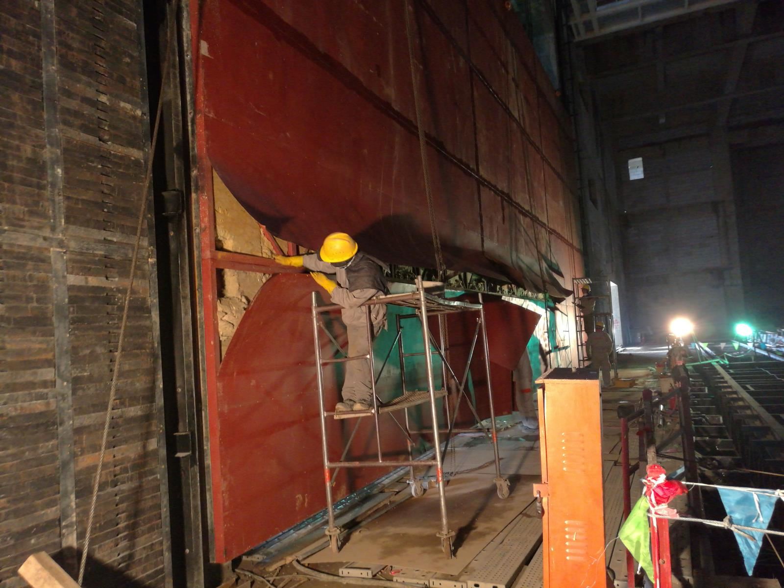 防火幕是一道安全防火專(zhuān)用門(mén),在劇場(chǎng)發(fā)生火災(zāi)事故或每場(chǎng)演出結(jié)束時(shí),該防火幕落下,把舞臺(tái)與觀眾廳分隔成兩個(gè)防火區(qū)域,或(后舞臺(tái)防火幕)將后舞臺(tái)與主舞臺(tái)區(qū)分隔,或(側(cè)防火幕)將側(cè)舞臺(tái)與主舞臺(tái)區(qū)分隔。