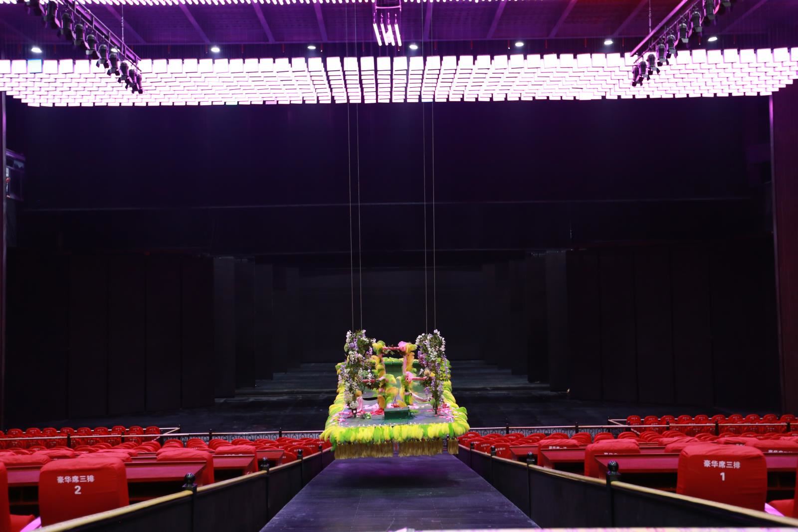 軌道根據(jù)演出創(chuàng)意和使用需求不同,可以為直線,也可以是不規(guī)則曲面弧線導(dǎo)軌(需考慮平移裝置最小轉(zhuǎn)彎半徑);平移一般采用自適應(yīng)摩擦輪傳動方式,在高定位精度使用場合,可采用齒輪齒條傳動;根據(jù)軌道形制不同,可采用拖令供電或滑觸線供電方式;在軌道為不規(guī)則且較長時,一般采用滑觸線方式;平移一般采用光柵定位,定位準(zhǔn)確,且可適應(yīng)不規(guī)則軌道。