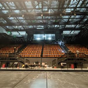 每個(gè)臺(tái)階安置整排觀眾席座椅,單套設(shè)備可容納觀眾80人,同時(shí)設(shè)置進(jìn)場(chǎng)/散場(chǎng)通道貫穿臺(tái)體前后。該設(shè)備從空間動(dòng)感、