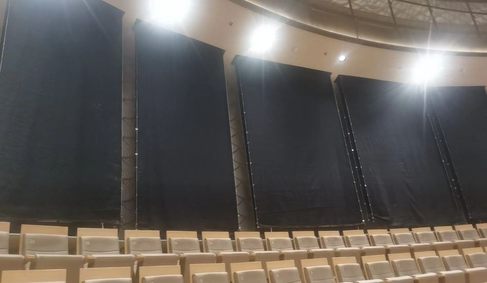 雙層吸聲簾幕,明裝位于觀眾席兩側(cè)及后側(cè)。