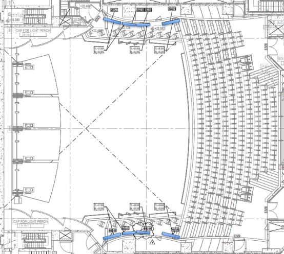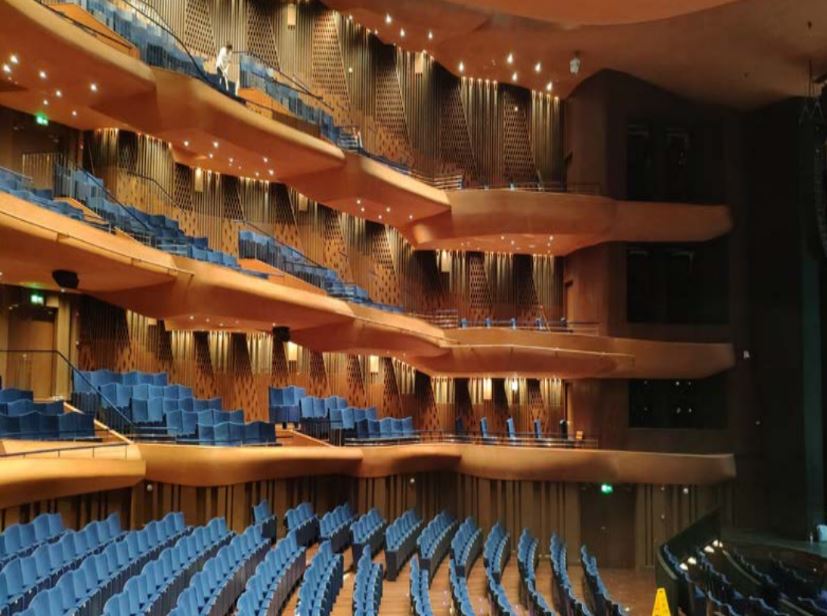 雙層吸聲簾幕,位于音樂廳兩側(cè)聲學(xué)空腔內(nèi)。