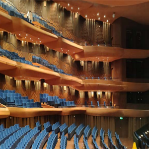 機(jī)械聲學(xué)裝置通常設(shè)置于(劇院等的)觀演區(qū)兩側(cè)、后區(qū)或頂部,是一種先進(jìn)的聲學(xué)調(diào)節(jié)裝置,主要用于優(yōu)化不同演出場景下的聲學(xué)效果。通過聲學(xué)裝置的機(jī)械動(dòng)作改變吸聲或反射面積,調(diào)整觀演區(qū)吸聲量,實(shí)現(xiàn)混響時(shí)間動(dòng)態(tài)變化。同時(shí)具有高頻吸收特性,有效減少聲染色和回聲。
